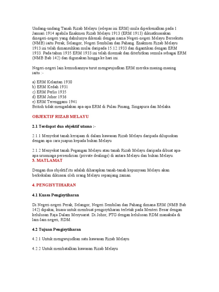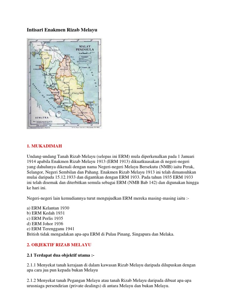 Intisari Enakmen Rizab Melayu