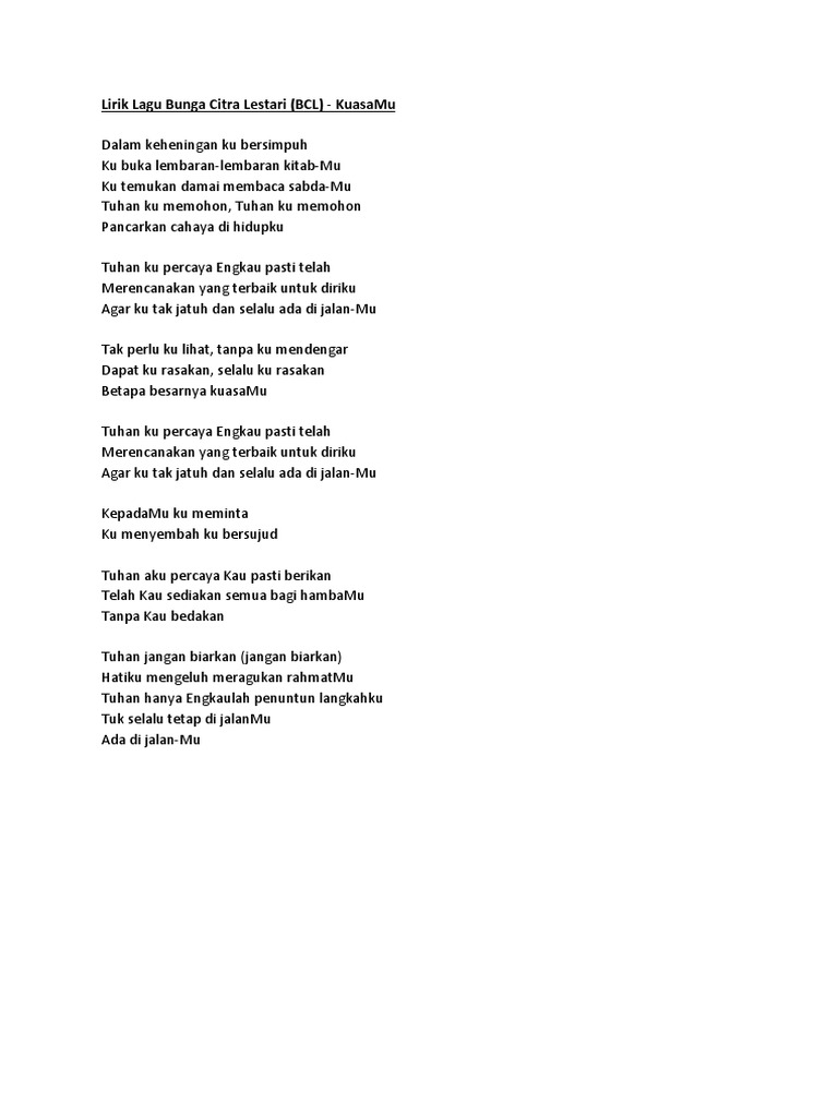Lirik Lagu Bunga Citra Lestari Bcl Karena Kucinta Kau