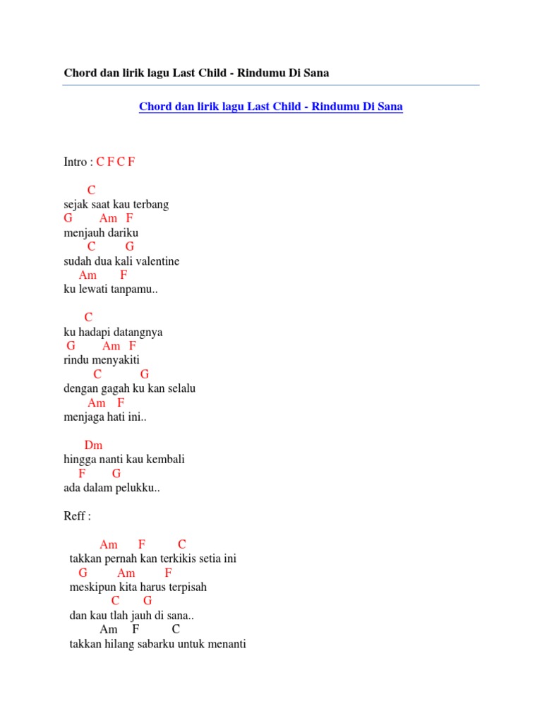 Chord Dan Lirik Lagu Last Child Rindumu Di Sana